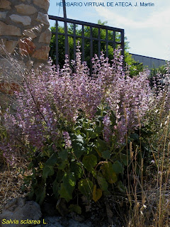 Familia: Lamiaceae (Labiatae). Nombre científico:Salvia sclarea L. Nombre común: Salvia romana. Usos: Vulneraria. Antisudorífica. Emenagoga. Localización: Junio 2009. Cuneta. Escapada de vivero. Origen: Alóctona.